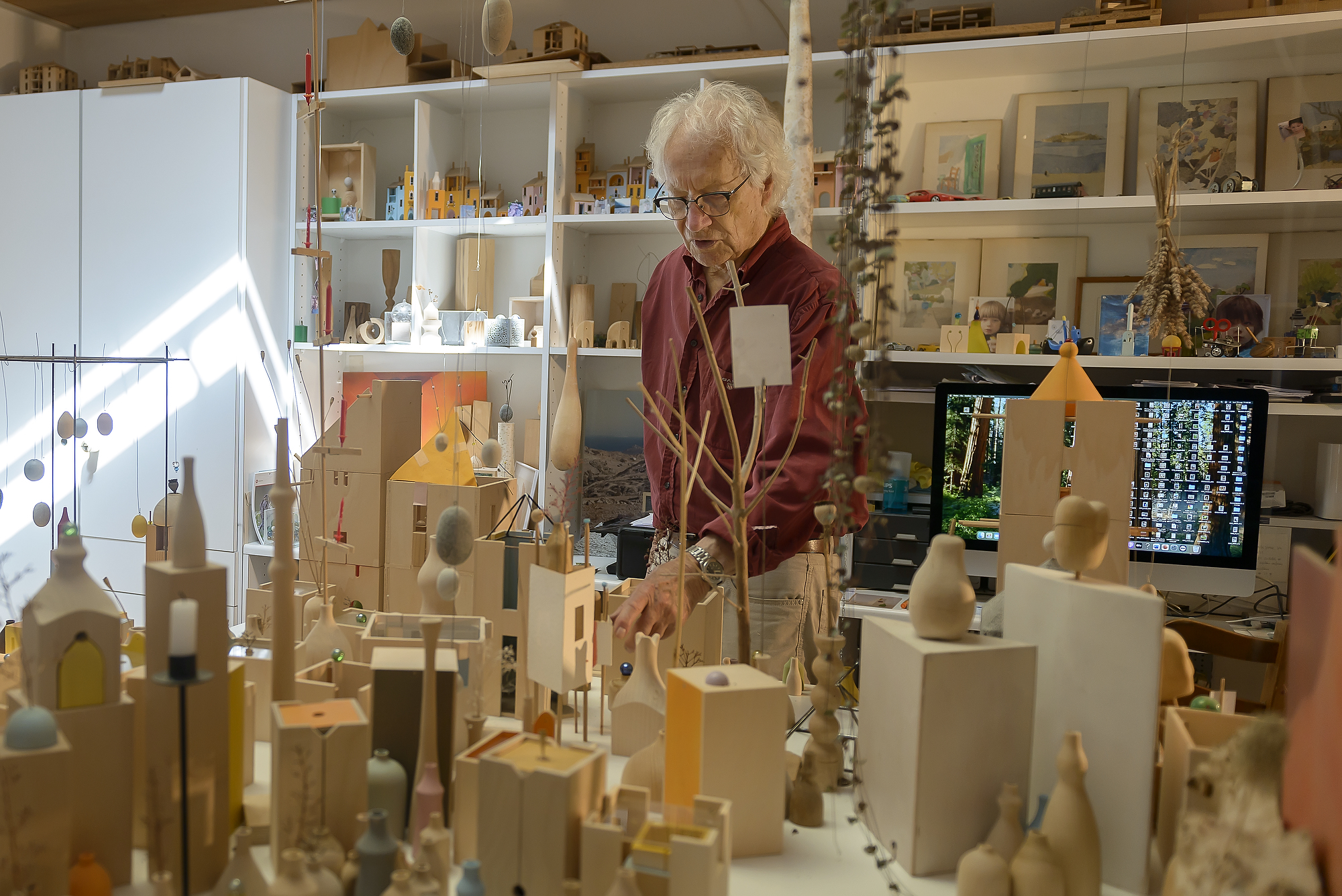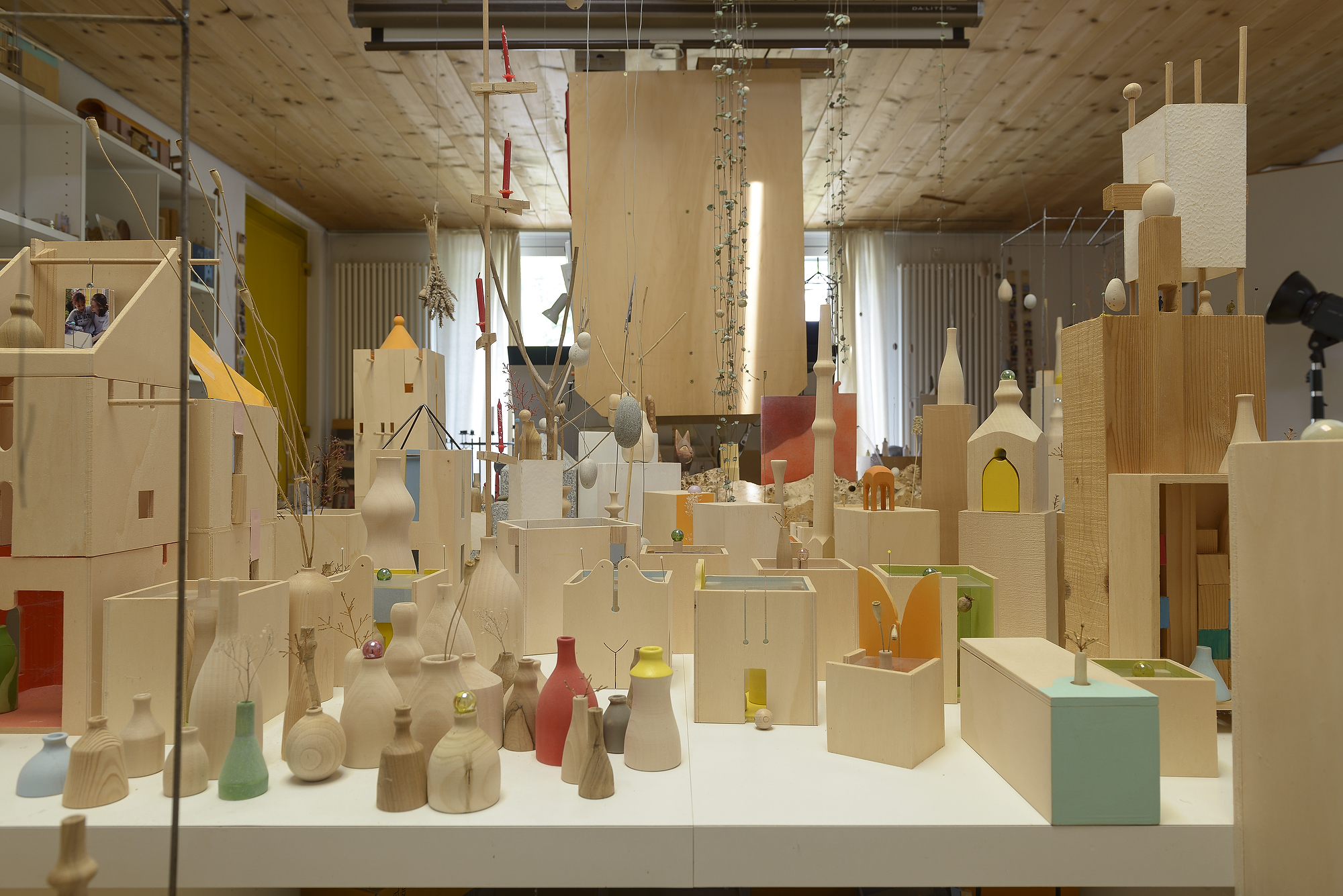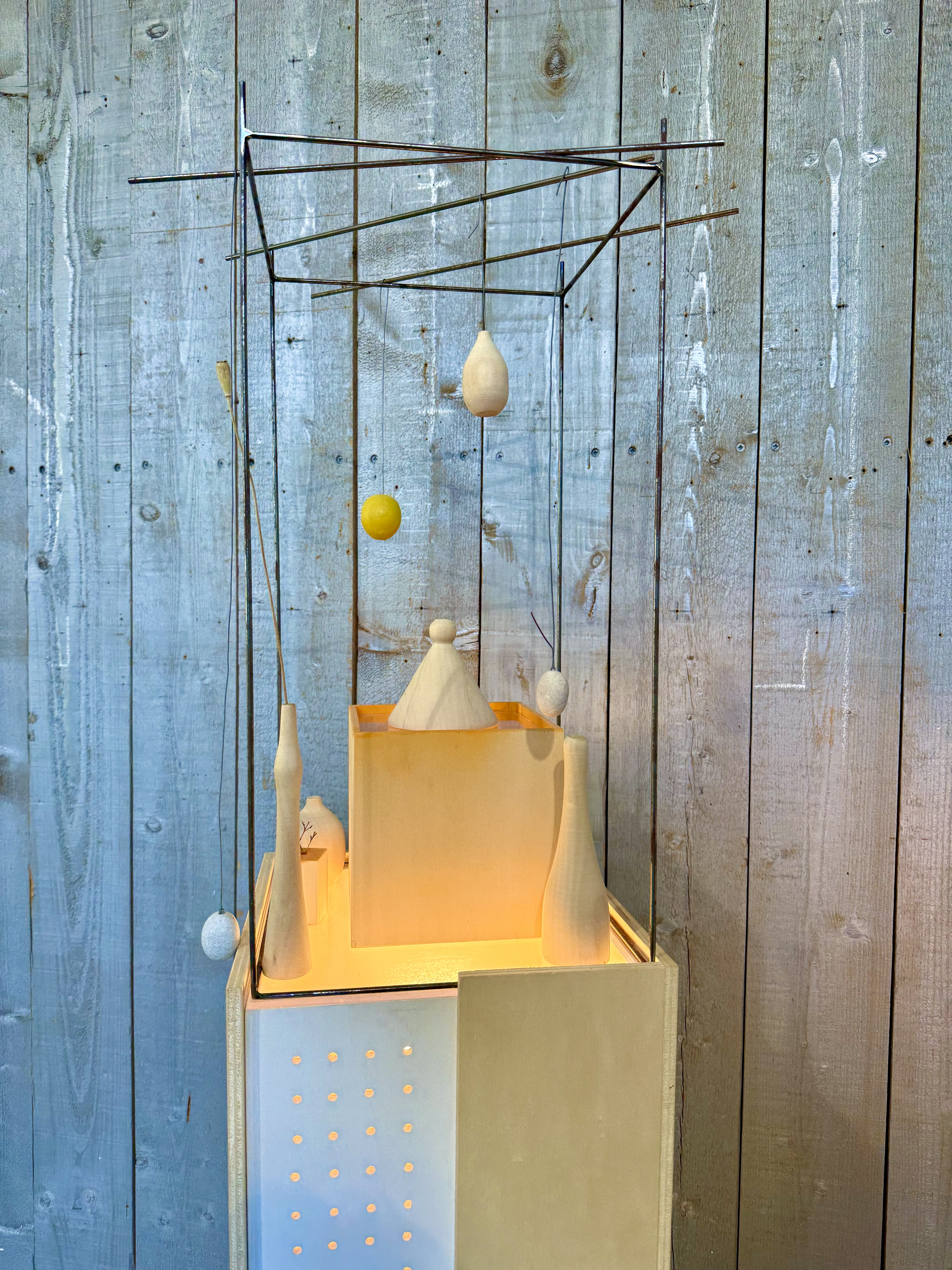 La dimensione ideale per visitare questi oggetti sarebbe in realtà la visita dell'atelier. Tuttavia a questo dato di fatto, si è via via sovrapposto un sentimento nuovo, condiviso da Pietro e da suo figlio Noah, il curatore della mostra, ovvero che ormai si era entrati in una nuova fase della sua vita di Pietro. A 92 anni ci si rende conto che la vita è un soffio e che un intero universo può scomparire in un batter d'occhio. L'esposizione generosamente accolta dall'Istituto i2A e dalla città di Lugano negli spazi della Limonata è una mostra delicata, che richiede di essere fruita con gli occhi e la curiosità di un bambino. Per questo lo spazio della Limonata, affacciato su un magnifico parco si prestava particolarmente bene a un esperienza immersiva, arricchita dal rapporto tra esterno ed interno.